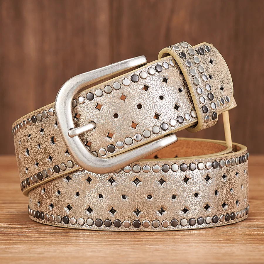 3.7CM Original Design New Vintage Lady Belt Handsome Hollow Out Rivet All-match Fashion Female Belts Quality Women Wide Belt